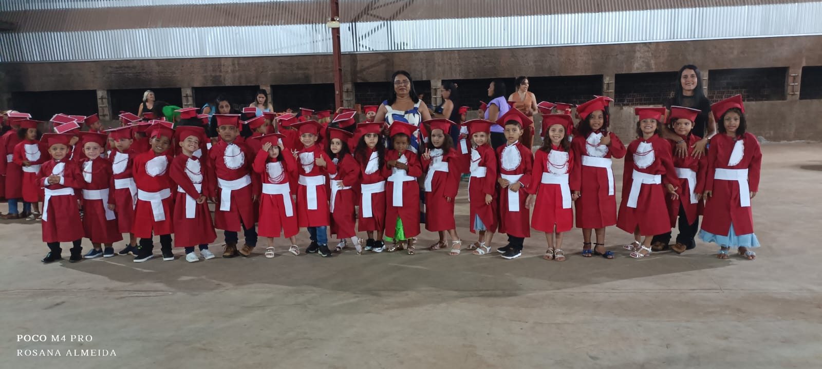 A festa de formatura foi realizada no salão da comunidade Santo Agostinho e contou com a presença dos familiares e amigos dos formandos. O ambiente estava repleto de alegria e emoção, com os pequenos vestidos a caráter e ansiosos para receberem seus diplomas.